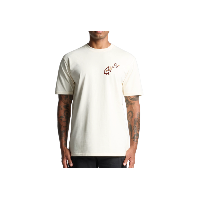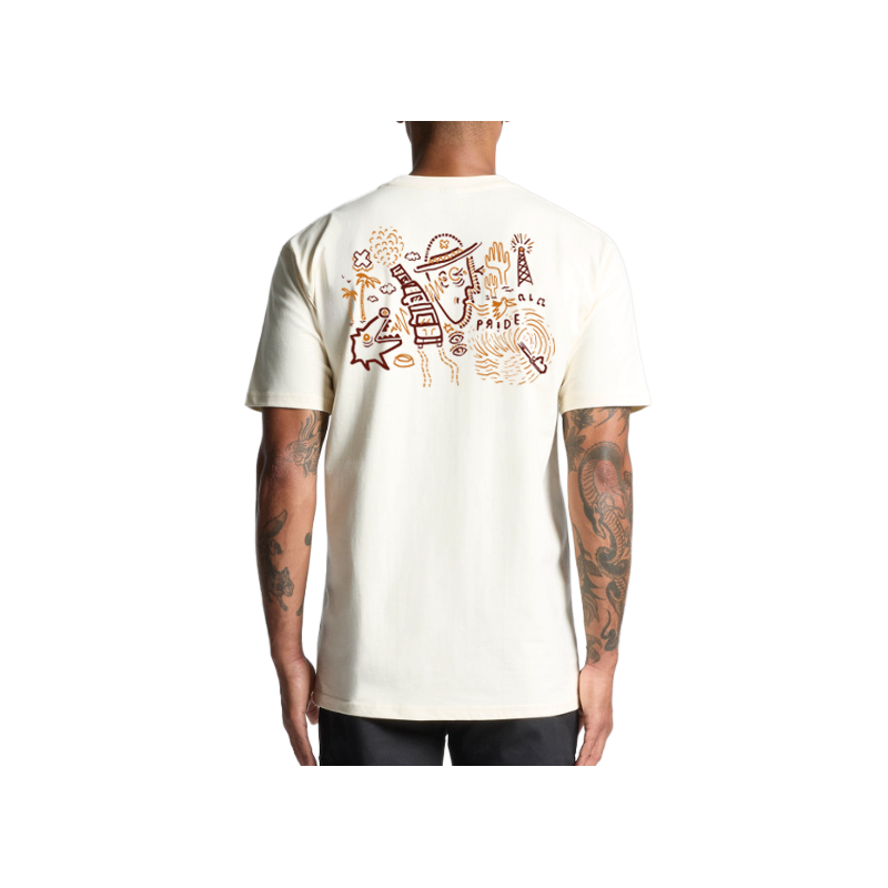 This tee features a regular fit and a heavyweight 220 GSM fabric made from 100% combed cotton — soft, durable, and made to age well. Finished with strong side seams, reinforced shoulder-to-shoulder taping, and double-stitched hems for a solid, long-lasting construction. It’s also pre-shrunk, so no surprises after the first wash.