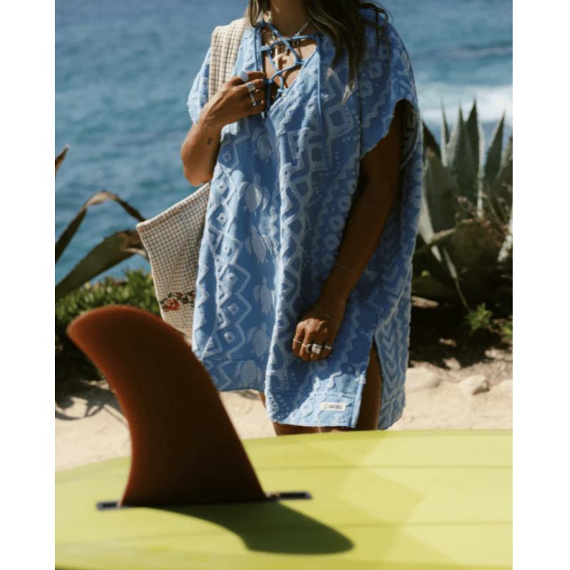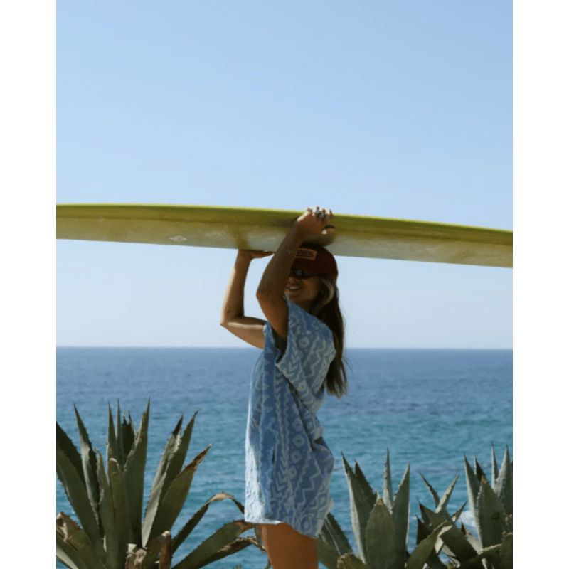 The Sand Cloud poncho combines comfort and practicality thanks to its blend of 100% Turkish organic cotton. Its soft texture, created by a combination of loops and half-terry, provides a pleasant feel to the touch. This poncho is designed to fit most women, from small to large sizes, thanks to its loose style that drapes differently depending on the silhouette. Sand-resistant, it also features a drawstring detail for a stylish look. Perfect for relaxing moments or after a swim.