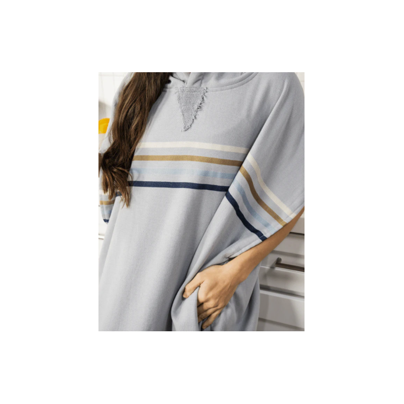 This poncho boasts a flat weave texture with a half-loop terry back, a large oversized hood, and practical side pockets. Its loose and comfortable fit is designed to suit most body types, offering excellent relaxation after activities or cozy comfort at home.