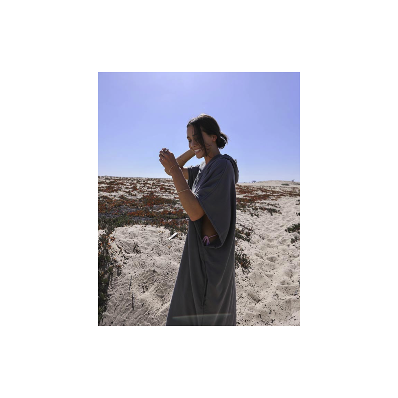 This poncho boasts a flat weave texture with a half-loop terry back, a large oversized hood, and practical side pockets. Its loose and comfortable fit is designed to suit most body types, offering excellent relaxation after activities or cozy comfort at home.
