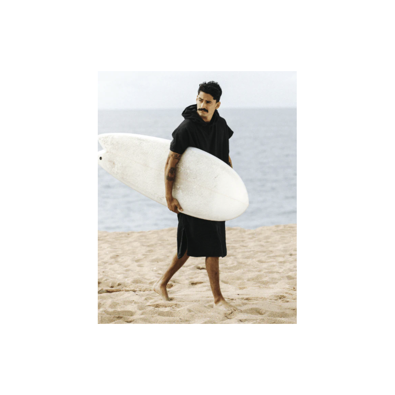 The Sand Cloud Stripe Hooded Poncho is the perfect companion for your beach moments. Ideal after a surf session, a shower, relaxing at home, or on cool beach days, this black hooded poncho features a classic striped design. It is made from 100% organic Turkish cottonlightweight, and multifunctional.
